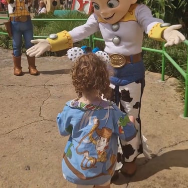 Made from upcycled fabrics featuring beloved characters, this magical dress is made for little heroes and dreamers. With a lined, fitted bodice and a full circle skirt that’s perfect for spinning, it’s finished with a sweet ribbon at the waist for that extra touch of charm. Eco-friendly, fun, and full of personality—just like your little one.