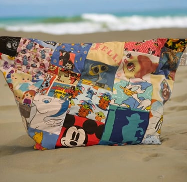 Big, bold, and full of character — literally! This large patchwork tote is made from leftover fabrics featuring everyone’s favourite characters, giving each bag its own playful personality. Fully lined for strength and finished with two reinforced handles, it’s perfect for shopping, beach days, or carrying all the essentials in style. A true feel-good bag — fun, functional, and fabulously eco-friendly! never 2 the same due to the nature of the fabrics and only aprox 5 bags available each year.
